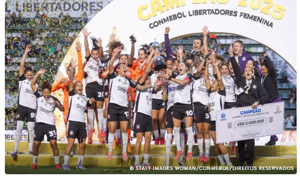 | 06:34h | NotíciasO Corinthians conquistou o título da edição 2025 da Copa Libertadores de futebol feminino após derrotar o Deportivo Cali (Colômbia) pelo placar de 5 a 3 nas penalidades máximas (após empate de 0 a 0 no tempo regulamentar), na noite deste sábado (18) no estádio Florencio Sola, em Banfield (Argentina).
