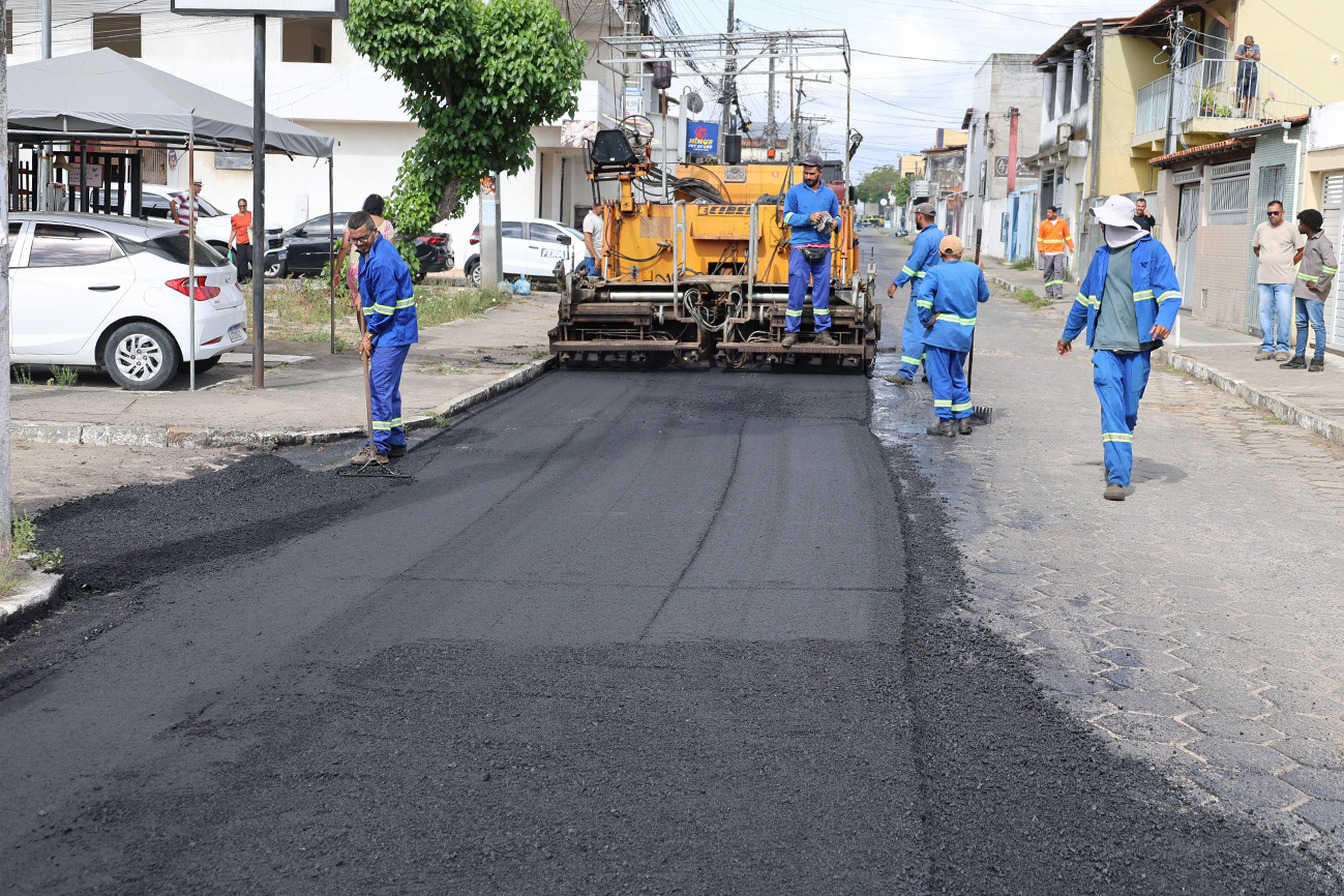 No início da manhã desta segunda-feira (19), a rotina dos moradores do bairro foi alterada. Em meio ao vai e vem de máquinas pesadas transportando e aplicando o Concreto Betuminoso Usinado a Quente (CBUQ), gradativamente a pavimentação a paralelepípedo está sendo substituída pelo asfalto, mais moderno e confortável.