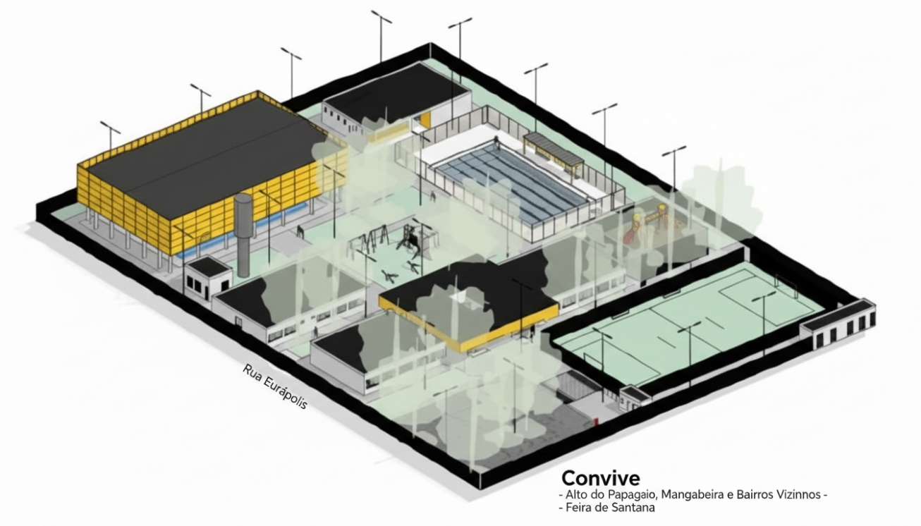 Considerado um equipamento de grande porte e grande impacto social, o Convive será implantado em uma área de aproximadamente 10 mil metros quadrados, na Rua Eurápolis, onde funcionava a antiga Emater-BA. O espaço foi reincorporado ao patrimônio do Município e passará a ter nova função, atendendo diretamente as comunidades do Alto do Papagaio, Mangabeira e bairros vizinhos.
